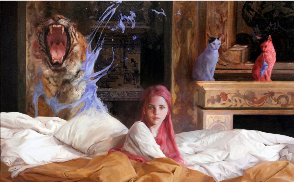 Durante mucho tiempo, me han dicho que tengo que cambiar mi forma de ser tan complaciente, tan pendiente de los demás, de sus necesidades, de no molestar a nadie, de darme tan a fondo, porque me diluyo en el proceso. Ahora creo que se equivocan y que no me desdibujo, más bien refuerzo los trazos de quién soy añadiendo las pinceladas de otros. Un poco como Guillermo Lorca, con sus pinceladas bruscas que buscan arrastrarte a un viaje a los abismos de su alma en esos cuadros oníricos, de realismo mágico y colores intensos. Él dice que cree que hay un lugar en nuestras mentes a través del cual podemos comunicarnos con nuestro nivel emocional más profundo. Y yo creo que no hay otra forma de llegar a ese nivel que dándonos sin reservas a los demás.